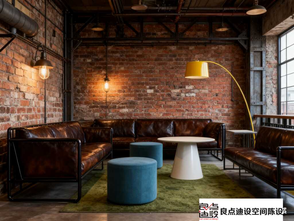 ?? 1. 軟裝C位搭配:金屬+皮革+木紋YYDS! * 金屬元素: 別只盯著水管燈!* 皮質沙發(fā)/單椅: 休息區(qū)、老板椅安排上!棕色、墨綠皮質是工業(yè)風的靈魂伴侶,一擺進去,復古摩登那味兒就有了!磨砂皮更顯高級。 * 溫潤木紋中和: 工業(yè)風太硬?原木色桌面、開放木格書架了解一下!淺木色能瞬間注入自然暖意,平衡水泥灰的清冷感。 選有做舊紋理的,別整太光滑!