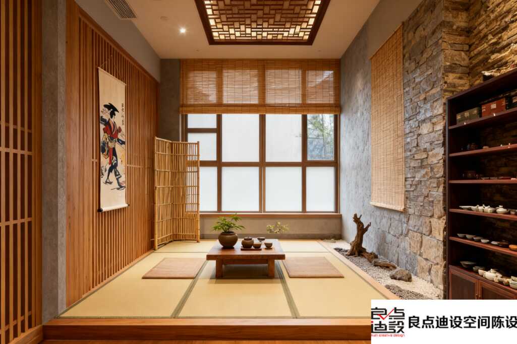 咱們再把鏡頭拉遠(yuǎn),看看整體氛圍是怎么營造的。暖米色的背景墻,像打了一層柔光,讓整個(gè)空間都包裹在溫潤的氣息里。頭頂上方那盞方形吊燈,光線柔和又集中,把人、茶、器物都烘托成了主角。***讓我拍案叫絕的,是腳下那幾何圖案的地磚!它一下子打破了中式風(fēng)格可能帶來的沉悶,色彩和圖形搭配得和諧又高級,讓空間瞬間有了層次和動感。