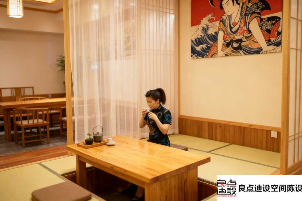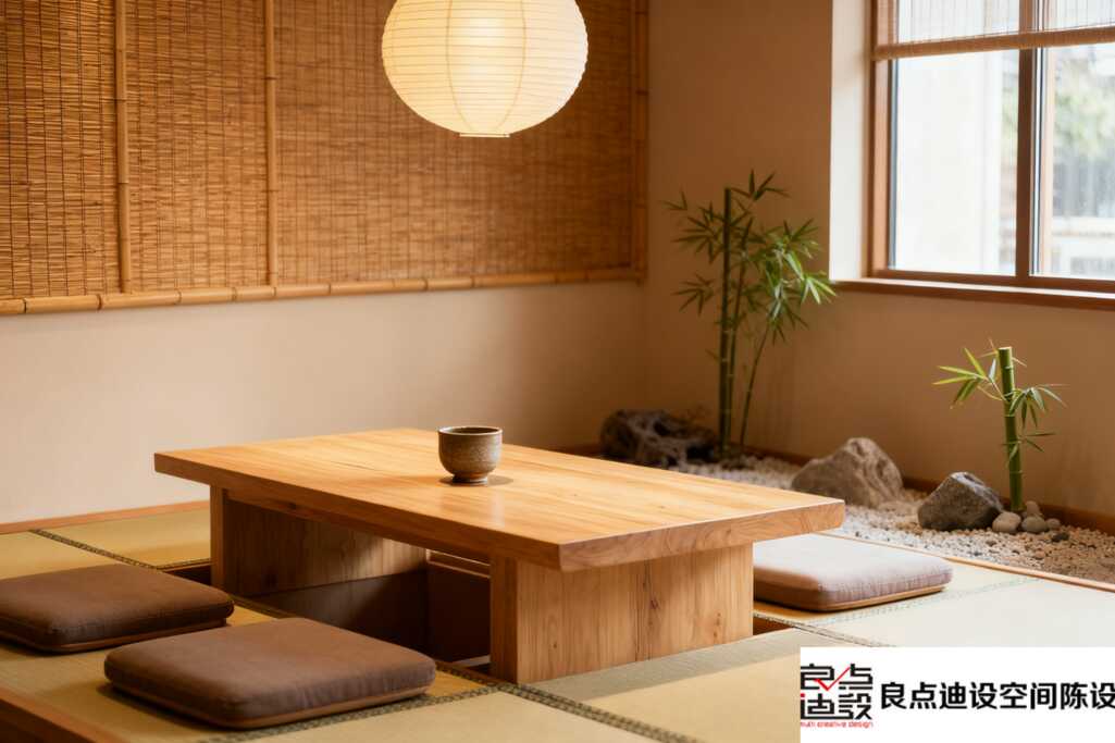 地面鋪了榻榻米,腳感軟fufu的,光腳踩上去超治愈~實(shí)木桌椅選了線條簡(jiǎn)潔的款式,沒(méi)有復(fù)雜雕花,但木質(zhì)紋理清晰可見(jiàn),古樸質(zhì)感瞬間提升。桌椅擺放疏密有致,留白恰到好處,既保了私密性又不顯擁擠。