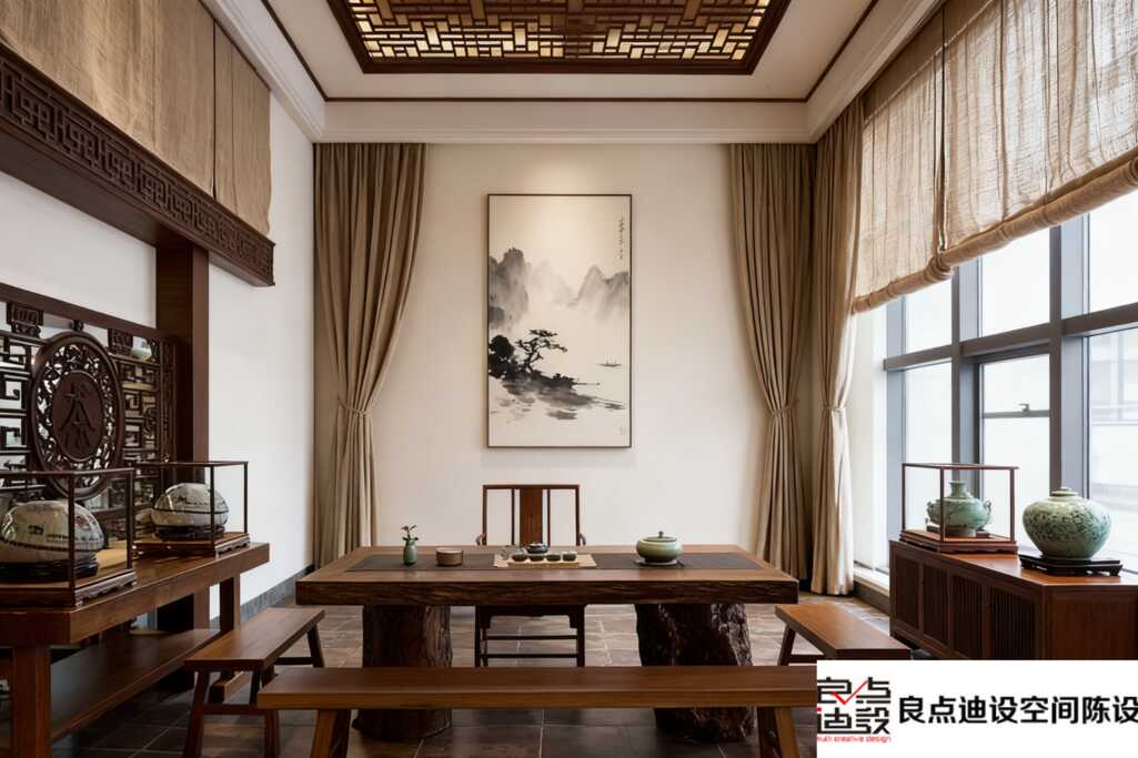窗邊設(shè)了木質(zhì)博古架,***是收納與展示的雙贏設(shè)計(jì)!架上陳列著青花瓷瓶、茶罐這些老物件,但擺得疏密有致,不會(huì)顯得擁擠。麻質(zhì)窗簾選得超聰明,柔光濾進(jìn)來(lái),給器物鍍了層柔光濾鏡,復(fù)古氛圍直接拉滿(mǎn)。博古架在茶樓里超實(shí)用,既能展示店主收藏,又自然分區(qū),讓空間有層次感。.jpg)