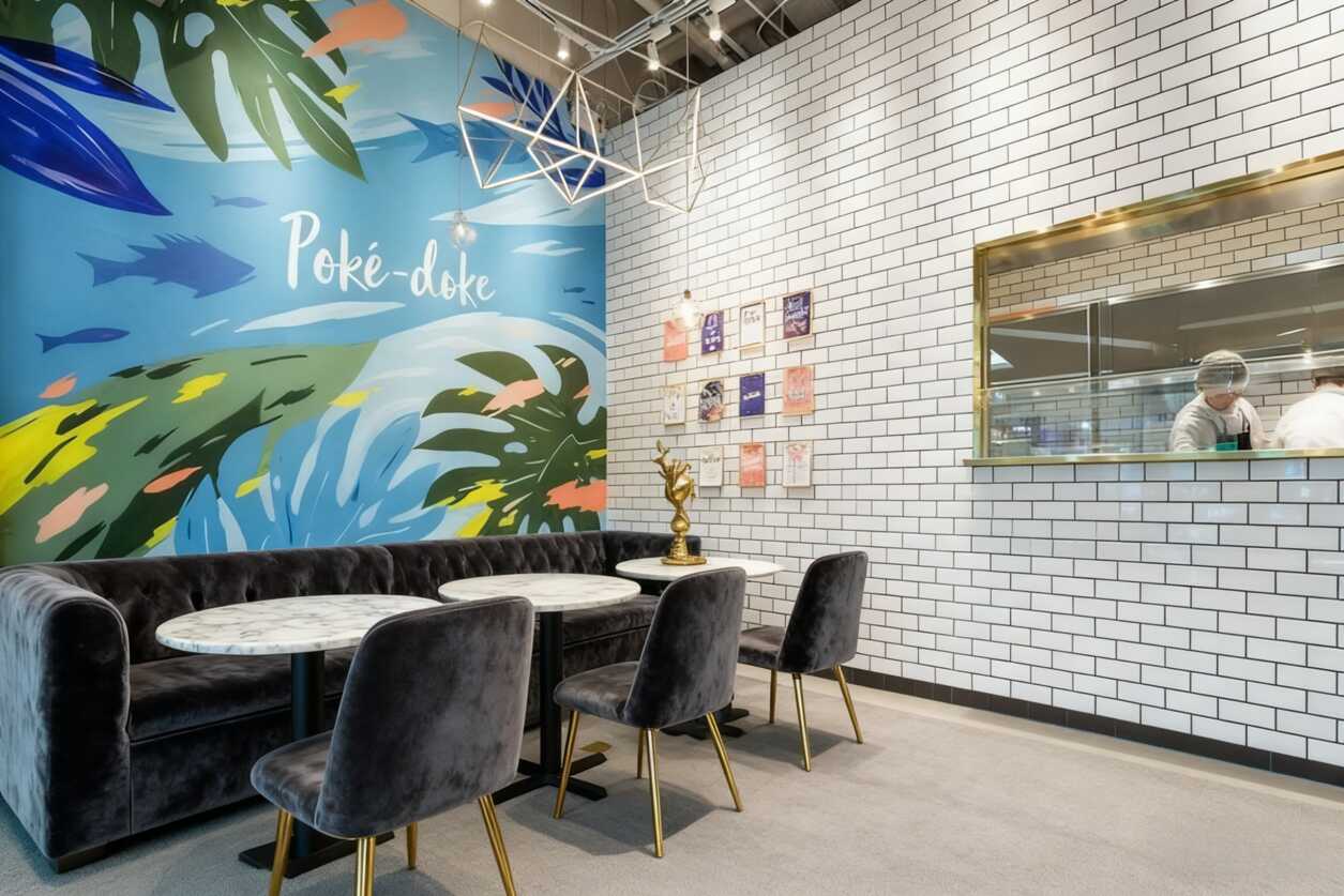 寶子們!今天帶你們?cè)拼蚩ㄟ@家剛開就火出圈的Poké-doke餐廳,這裝修簡直長在年輕人的審美點(diǎn)上!一進(jìn)門就被那片蔚藍(lán)色海洋壁畫征服了——游動(dòng)的熱帶魚和搖曳的棕櫚葉直接把海邊度假感拉滿,白色磚墻上的彩色掛毯更是點(diǎn)睛之筆,這種碰撞絕了!