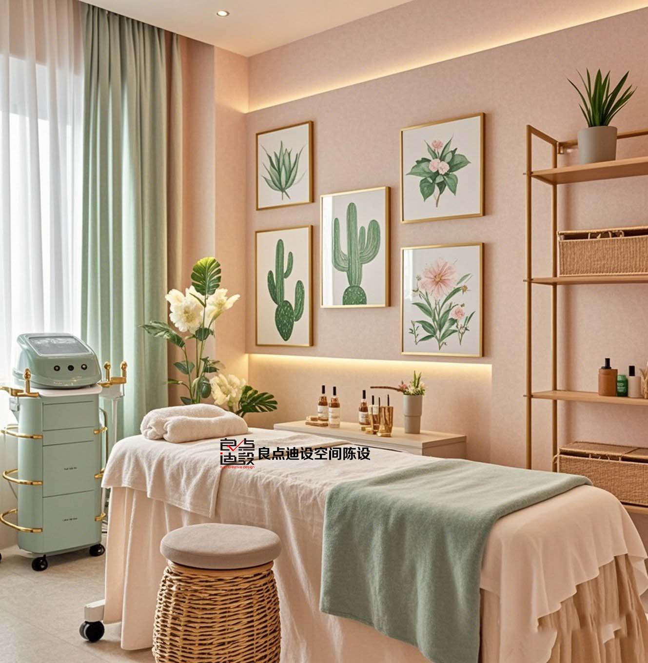 3. 確定美容院的軟裝搭配:美容院的軟裝搭配需要考慮到整體的美感和舒適度,同時(shí)也要考慮到不同房間和不同功能區(qū)域的軟裝搭配。