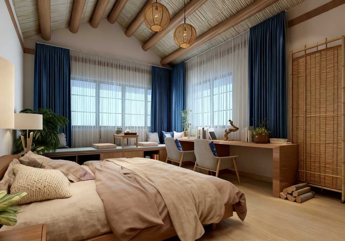 新中式侘寂風民宿軟裝設計殺瘋了!藍白木三色碰撞,住進來就想賴到退房