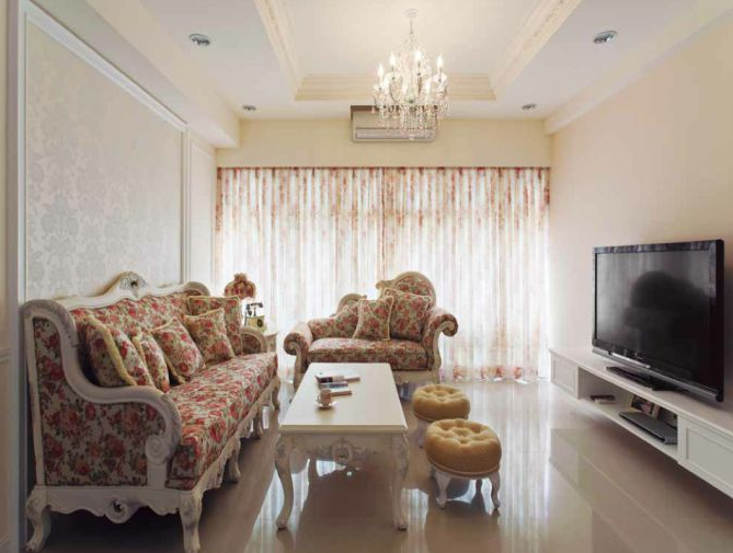 沙發(fā):古典風(fēng)格可以用金銀勾邊裝飾,坐墊的提花圖案以桃色、紫藍(lán)色為跳色。