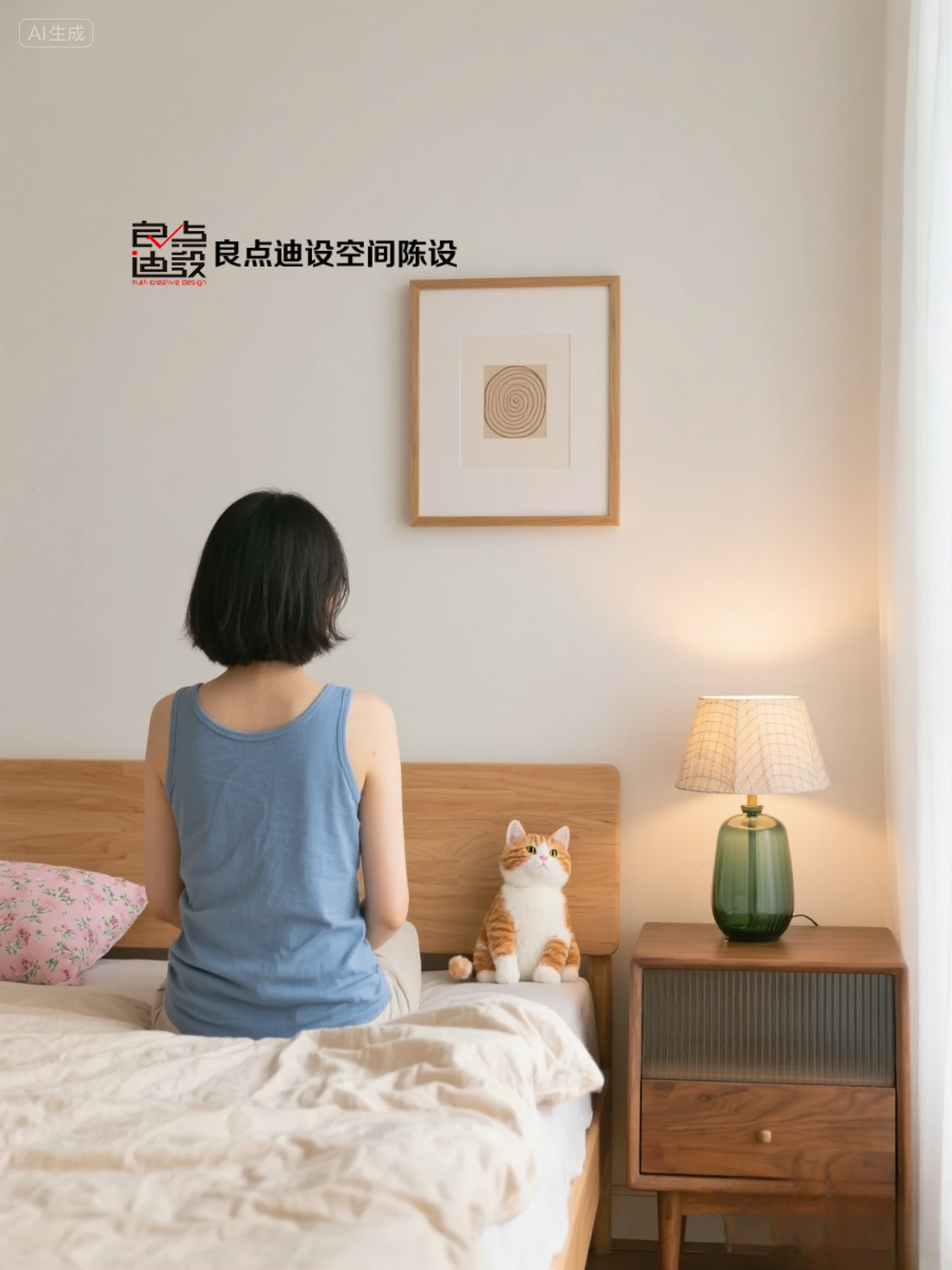▲床頭墻上開(kāi)了一個(gè)室內(nèi)窗,小窗戶裝上百葉卷簾,搭配簡(jiǎn)約床頭柜+球形床頭燈,整個(gè)臥室給人一種簡(jiǎn)約樸素的溫馨優(yōu)雅感。