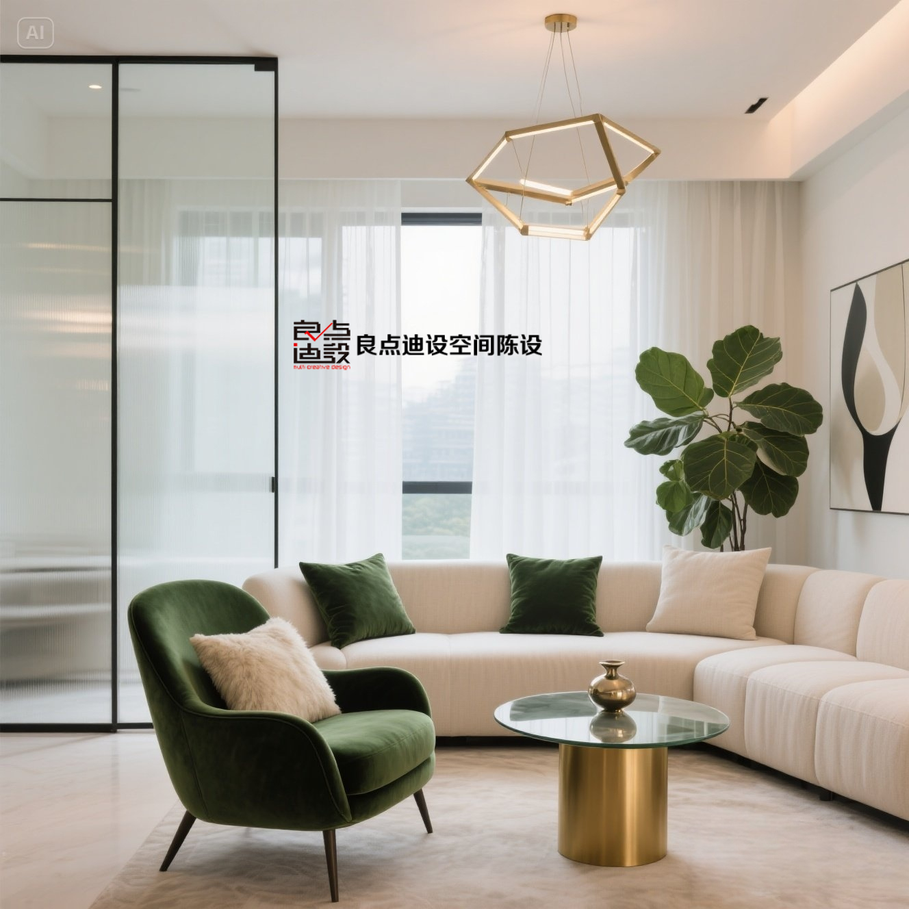 核心王炸搭配:白、綠、金! 大面積純凈白打底,氣質清透又顯大。點睛之筆就是那一抹高飽和度的墨綠單椅,瞬間拉高調性,時髦值拉滿!鎏金元素的幾何吊燈絕了,線條感十足,一秒成為空間焦點,輕奢感拿捏得死死滴。信我,這配色公式誰用誰高級!??