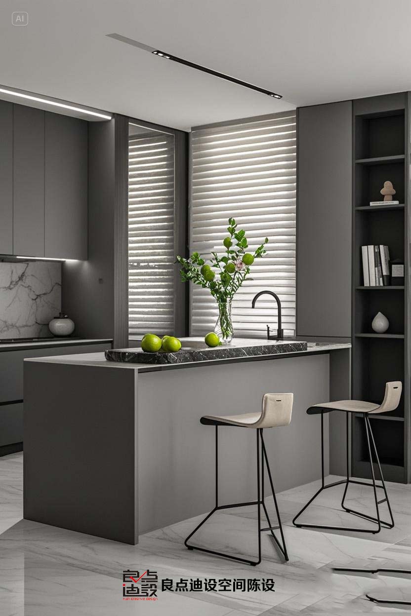 深灰島臺(tái)+百葉窗=我的理想廚房DNA!這設(shè)計(jì)也太會(huì)撩了!